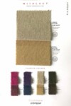 La cartella è composta da 40 colori che fanno parte della tradizione del cardato, riproducibili nelle seguenti combinazioni : Cashmere, Cashmere & Wool , Cashmere & Mix e Cashmere & Blends.